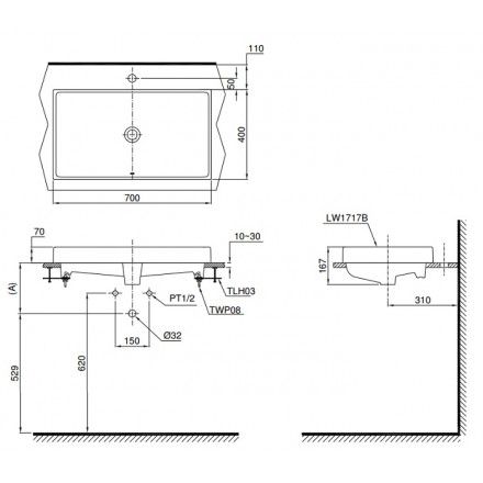 Bản vẽ bồn rửa mặt lavabo TOTO LT1717