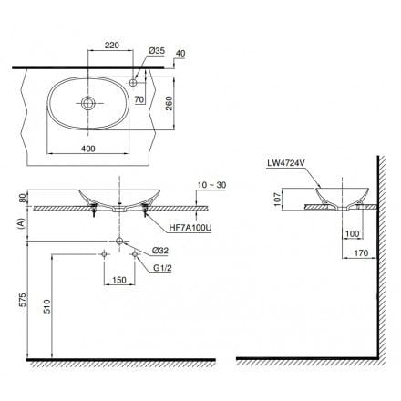 Bản vẽ chậu rửa mặt TOTO LT4724