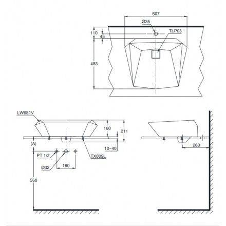 Gợi ý vòi nước kết hợp: Vòi nóng lạnh (đã bao gồm chặn nước và dây cấp) TLG07305V, TLG09305V, TLG02307V,...- Ống thải nước: TVLF401